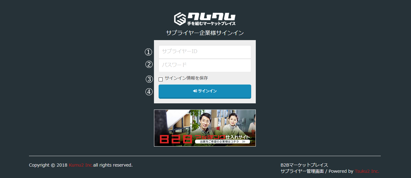 サプライヤーID・パスワードを入力し、サインイン完了します。