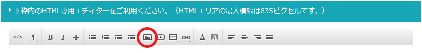 • HTMLエディターは【InternetExplorer】に一部対応しておりません。(画像貼り付け部分)恐れ入りますが、【Google Chrome】等のブラウザにてご使用ください。