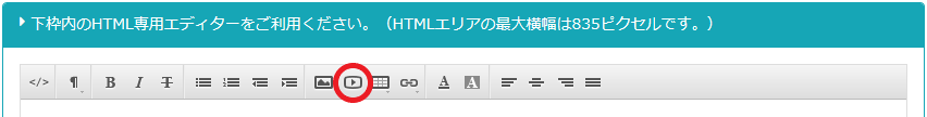 YouTube埋め込みコードを取得して、HTMLエディターメニュー欄の再生マークアイコンから貼り付けます。