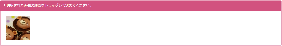 画像の順番をドラッグ&ドロップで変更します。左端の画像がサムネイル画像となります。